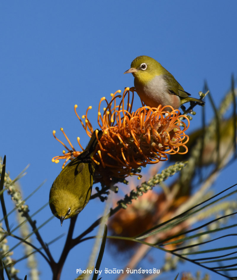 หากินเป็นฝูงใหญ่ เคลื่อนที่ไปตามทรงพุ่มของต้นไม้ทั้งระดับสูงและต่ำ มักพบตามต้นไม้ที่ออกดอกกินน้ำหวานจากดอกไม้ หรือเคลื่อนที่หากินแมลงตามพุ่มไม้ ส่งเสียงเล็กแหลมเบา